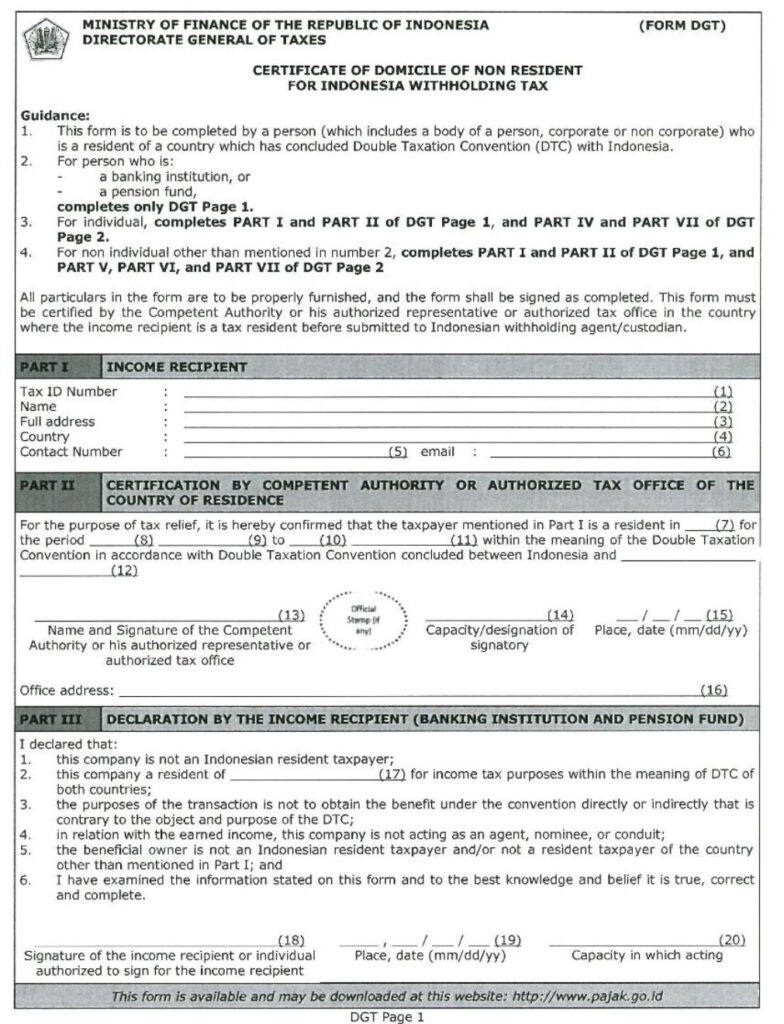 二重課税防止協定の申請方法にかかわる国税総局長規則 No. PER-25/PJ/2018 (PER-25) が2018年11月21日付で発布されました。当該規則により、2017年6月19日に発布された No. PER-10/PJ/2017 (PER-10) は無効となります。PER-25は、2019年1月1日より有効となります。改定の内容は下記のとおりです。