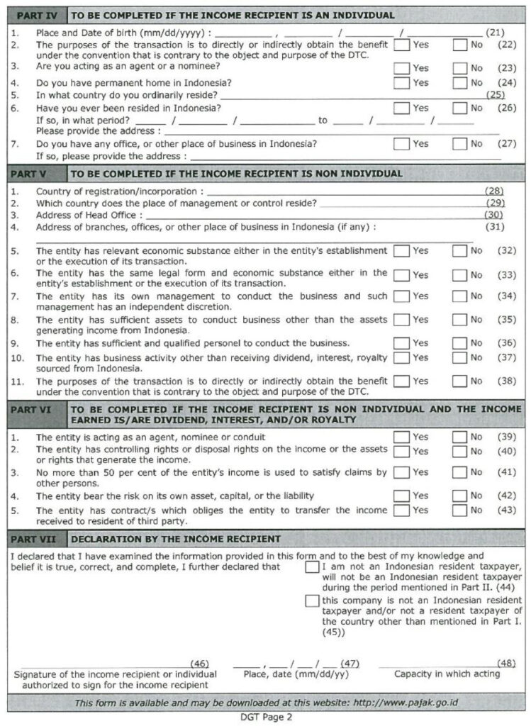 海外居住者が条約締結国の書式による “Certificate of Residence” を作成した場合は、DGT の Part-II 以外に必要事項を記載の上、提出することが必要です。